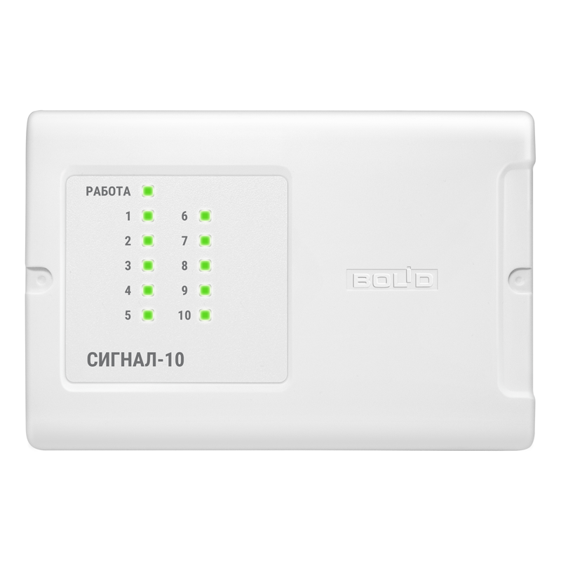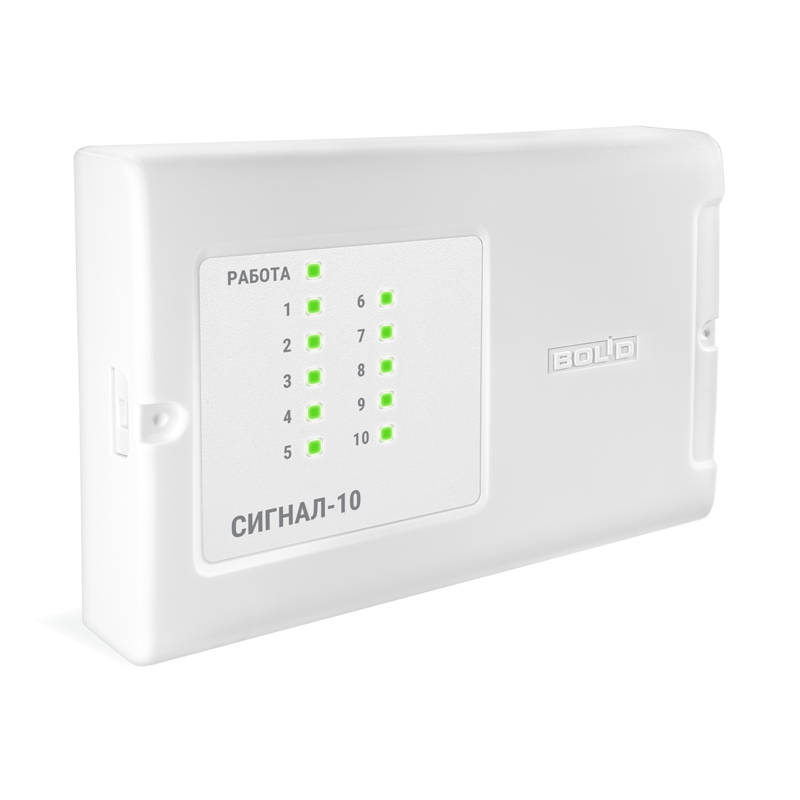 Блок приемно-контрольный охранно-пожарный Сигнал-10 предназначен для совместного использования с сетевым контроллером (пультом контроля и управления охранно-пожарным С2000М или прибором приёмно-контрольным и управления пожарным Сириус или их исполнениями) в качестве блока приёмно-контрольного в составе комплексов технических средств: