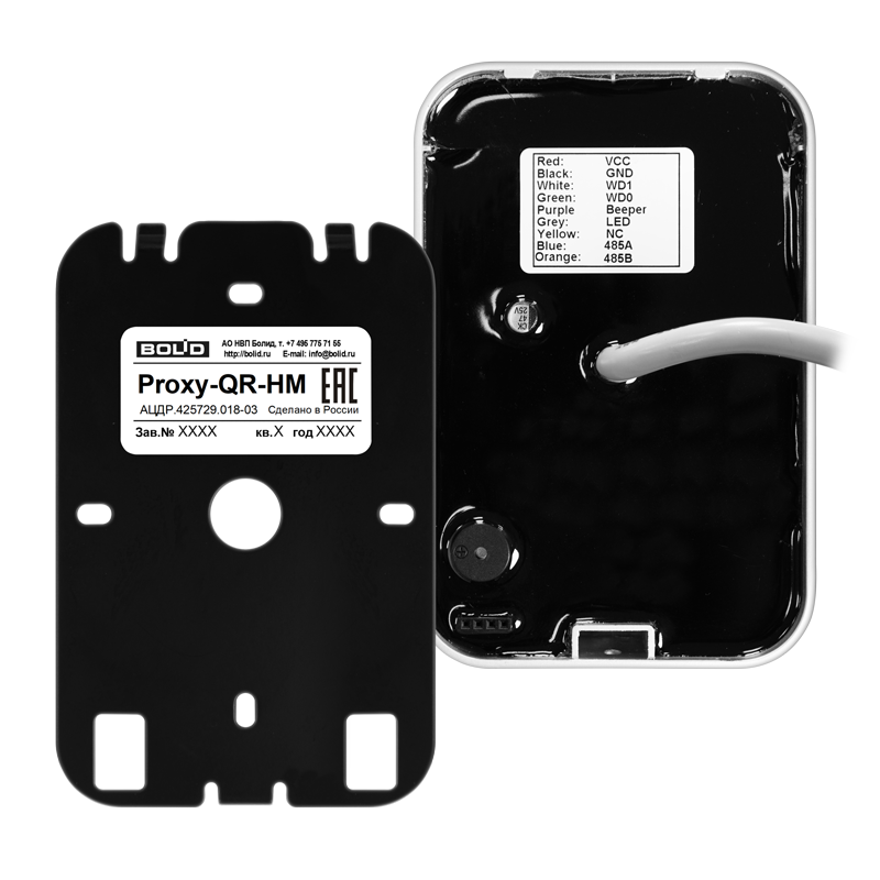 | Габаритные размеры, мм:Proxy-QR-VE, Proxy-QR-VMProxy-QR-HE, Proxy-QR-HM | 58х138х2380х120х23 |