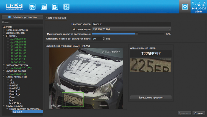 Однако, если использовать вадеоаналитику встроенную в конкретную модель видеокамеры BOLID, то данное ограничение не действует. В этом случае видеорегистратор может обрабатывать большее количество каналов, так как нагрузка по анализу видеопотока перераспределяется на видеокамеры, которые выполняют аналитические функции самостоятельно.