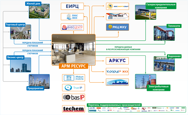 В настоящее время одно автоматизированное рабочее место (АРМ) оператора системы "Ресурс", то есть один диспетчерский компьютер, способен обеспечить сбор, обработку и хранение показаний 30 000 приборов учета. Причем это практически все известные на российском рынке счетчики от разных производителей: список поддерживаемых приборов насчитывает более 100 наименований.